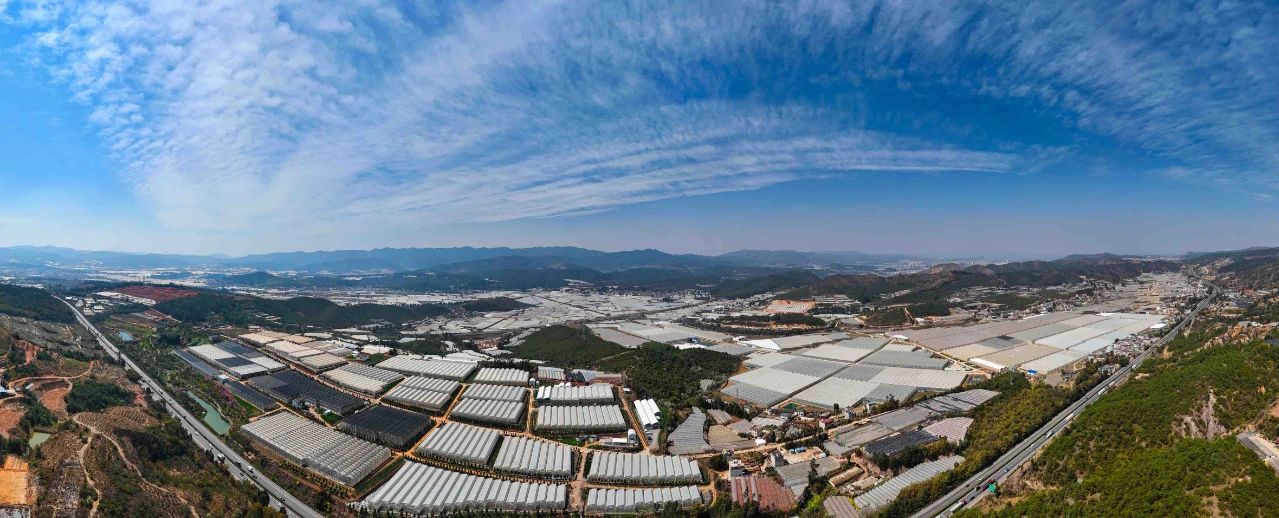昆明市晉寧區(qū)現(xiàn)代花卉產(chǎn)業(yè)園區(qū)俯瞰圖。云南日報(bào)記者 高吳雙、舒倩/攝