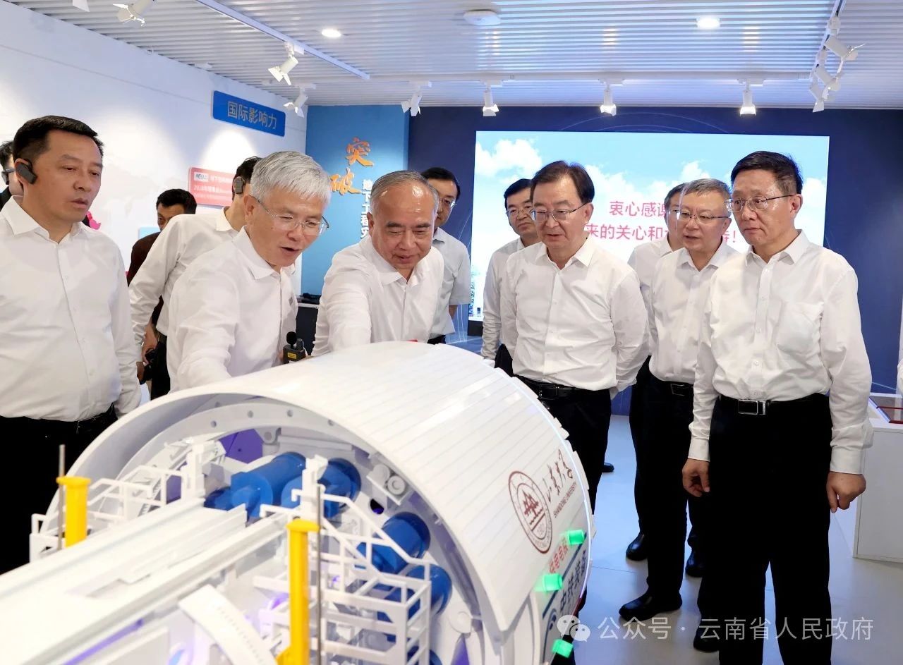 △ 云南省黨政代表團(tuán)在山東大學(xué)考察隧道工程災(zāi)變防控前沿技術(shù)在滇應(yīng)用情況。