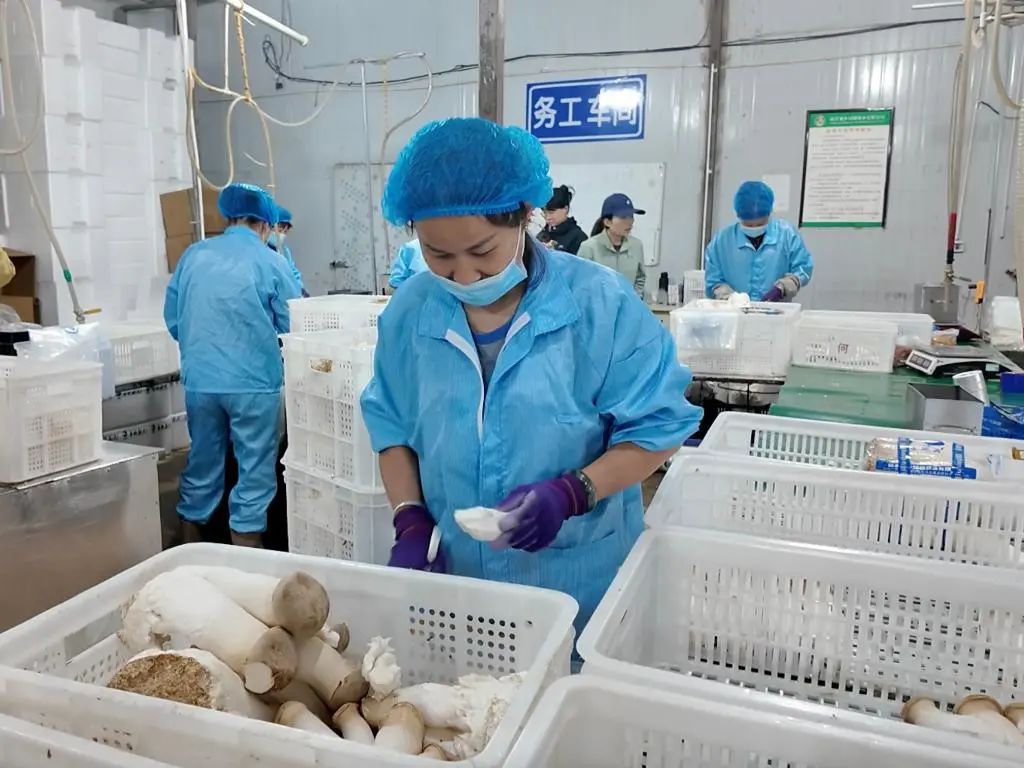 蓬勃發(fā)展的食用菌產(chǎn)業(yè)還催生出助農(nóng)增收的聯(lián)農(nóng)帶農(nóng)機制。陸良爨鄉(xiāng)綠圓菇業(yè)有限公司通過流轉土地,帶動周邊600多戶農(nóng)戶種植食用菌,每戶年均增收1.5萬元?!懊總€月打包分揀食用菌能有4000多元的收入,我很滿意。”家住工廠附近的農(nóng)戶朱麗仙說,除了土地租金,周圍農(nóng)戶還可以到車間里務工,實現(xiàn)家門口就業(yè)。