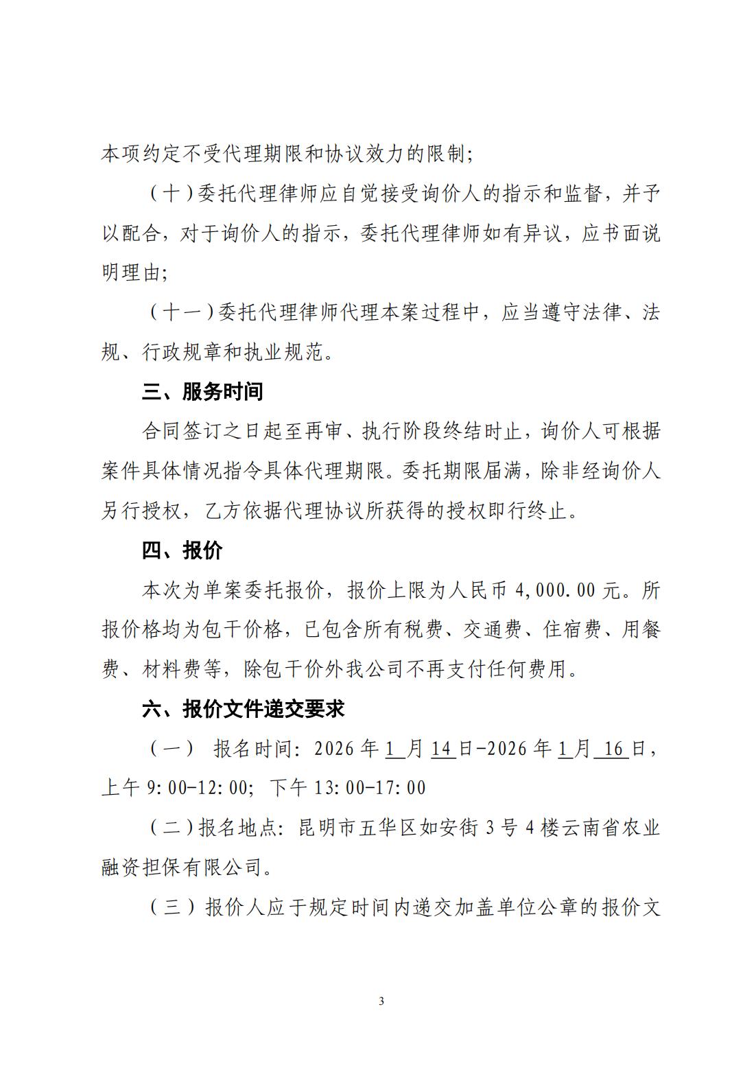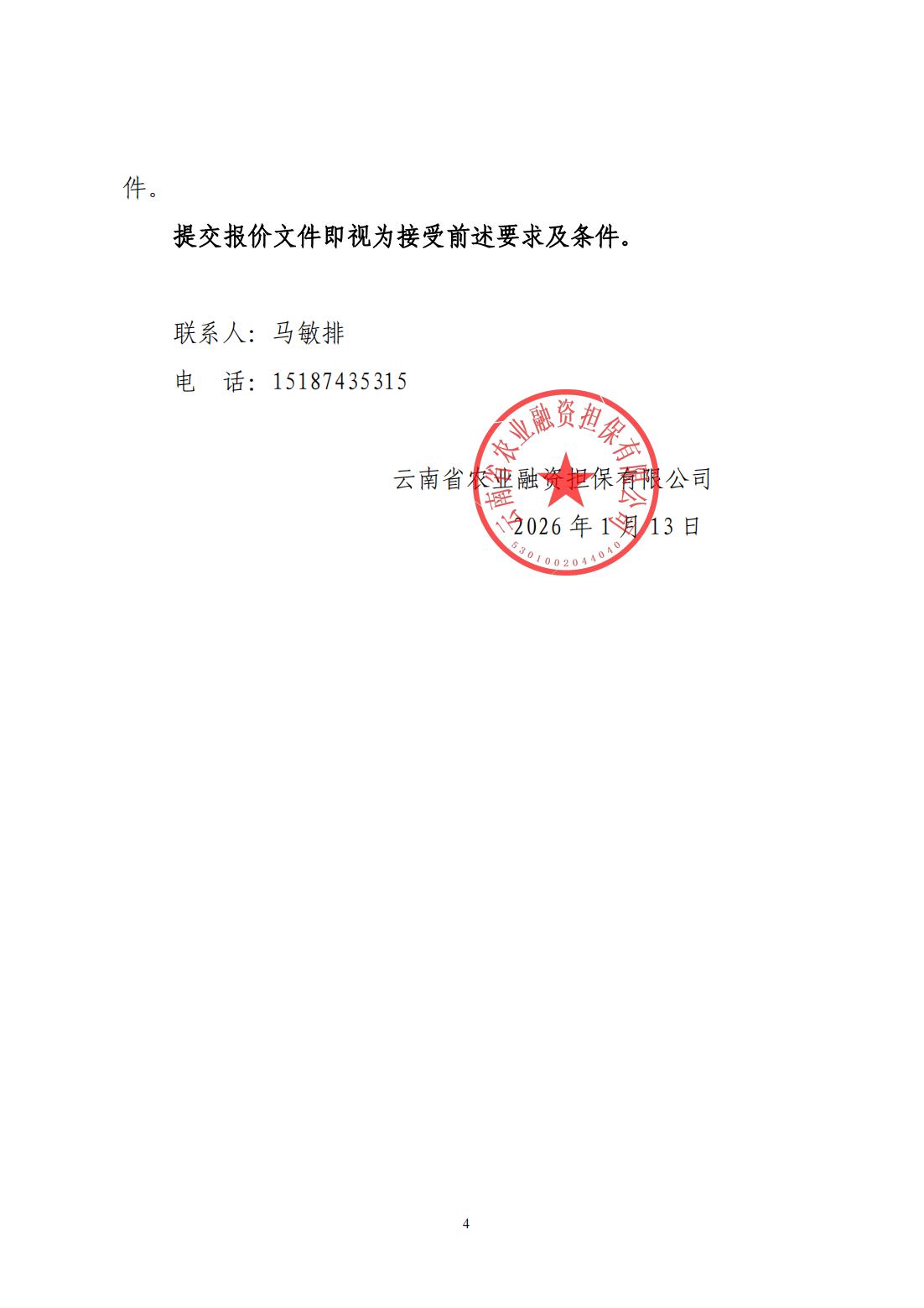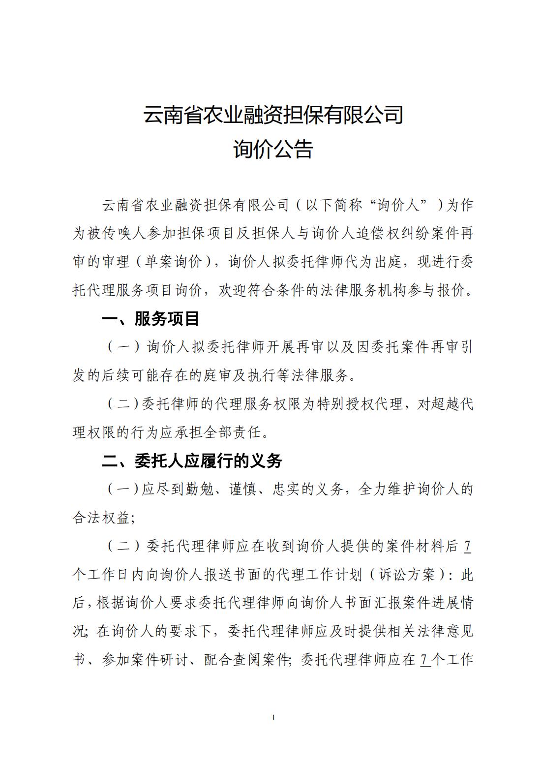 云南省農業(yè)融資擔保有限公司詢價公告