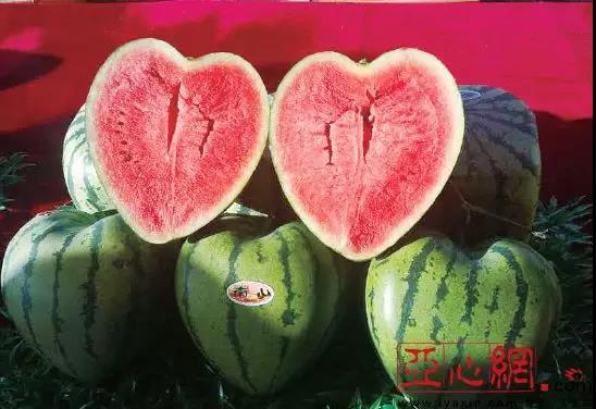 其實,形狀各異的西瓜是靠模具壓制而成的。當(dāng)西瓜生長至幼瓜階段時,將它們放置在方形、元寶形和心形的塑料模具中,生長期間,西瓜會一直受到模具擠壓,在撤離模具后,就成了各式的形狀。