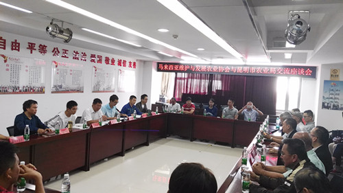 8月29日馬來西亞維護與發(fā)展協(xié)會會長、皇室拿督蔡振行博士一行27人到昆明市農(nóng)業(yè)局開展農(nóng)業(yè)交流,市農(nóng)業(yè)局倪淼副局長、局辦公室、人事處、種植業(yè)處、畜牧處、市場信息處、質(zhì)監(jiān)處等相關(guān)處室人員參加座談會。