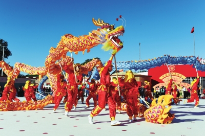 9月23日,秋高氣爽,艷陽(yáng)高照,首屆中國(guó)農(nóng)民豐收節(jié)隆重舉行,主會(huì)場(chǎng)設(shè)在北京農(nóng)業(yè)展覽館。圖為來(lái)自北京市平谷區(qū)的農(nóng)民舞龍隊(duì)在盡情表演,以表達(dá)五谷豐登喜慶豐收的喜悅心情。