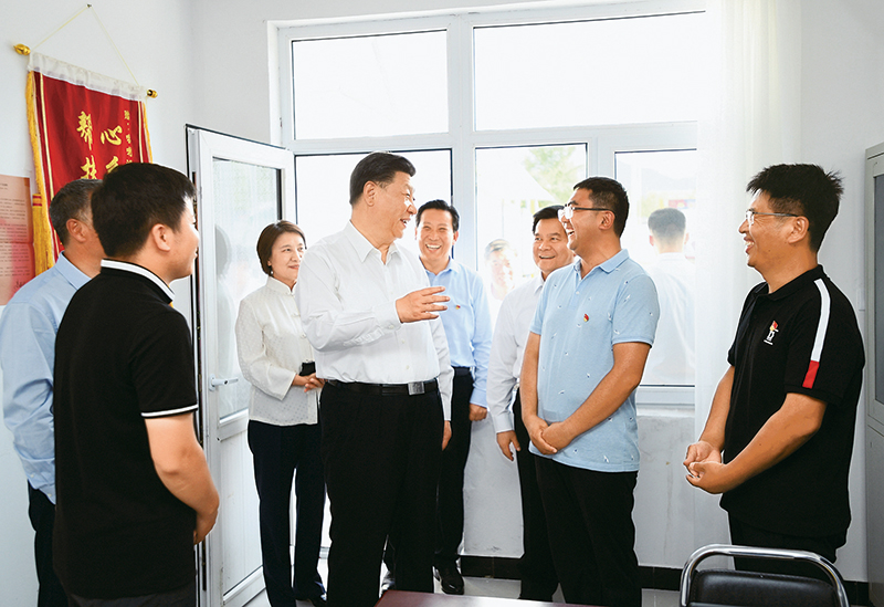 2019年7月15日至16日,中共中央總書記、國家主席、中央軍委主席習近平在內蒙古考察并指導開展“不忘初心、牢記使命”主題教育。這是15日下午,習近平在赤峰市喀喇沁旗河南街道馬鞍山村黨群服務中心了解基層黨建、民族團結和鄉(xiāng)村振興情況。