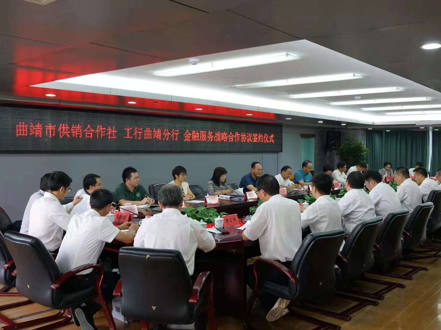 儀式上,兩家單位負責人簽署了金融服務戰(zhàn)略合作協(xié)議并作講話。工商銀行曲靖市分行黨委書記、行長李永德介紹工商銀行曲靖市分行的機構(gòu)布局和人員結(jié)構(gòu)及2021年以來工商銀行曲靖市分行的業(yè)務發(fā)展情況,并表示在“十四五”期間工行將在服務“三農(nóng)“”,服務鄉(xiāng)村振興方面,持續(xù)加大金融對實體經(jīng)濟的服務力度。隨后,曲靖市供銷合作社聯(lián)合社黨組書記、理事會主任徐興朝對曲靖供銷合作社聯(lián)合社發(fā)展情況做了介紹,分析曲靖供銷合作社發(fā)展前景和困難,在雙方金融戰(zhàn)略合作下,曲靖供銷合作社將邁上新臺階。與會單位及我公司對目前支持供銷系統(tǒng)的政策情況進行了詳細介紹。