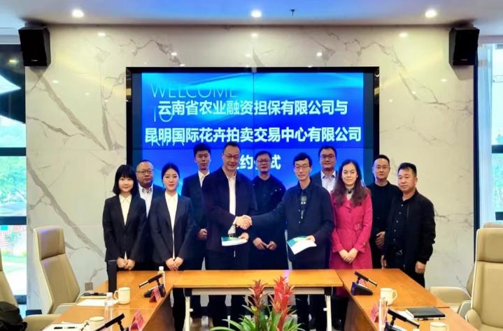 云南農(nóng)擔(dān)與昆明國(guó)際花卉拍賣交易中心“花拍農(nóng)擔(dān)貸”產(chǎn)品簽約儀式