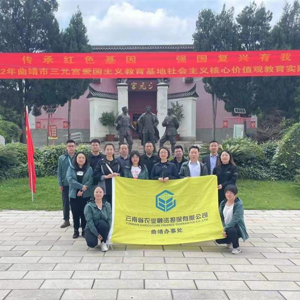 2022年5月25日,云南農(nóng)擔(dān)公司高逢旸監(jiān)事長(zhǎng)攜曲靖辦事處員工前往曲靖市三元宮愛(ài)國(guó)主義教育基地參觀學(xué)習(xí),重溫紅軍長(zhǎng)征不朽的英雄歷史。