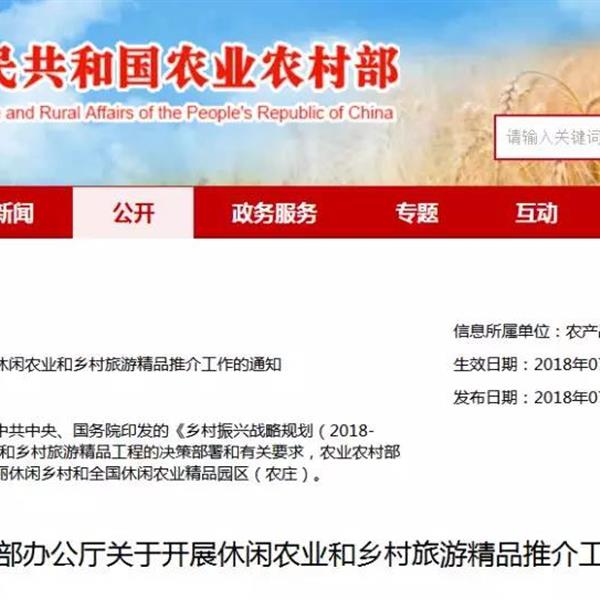 為落實今年中央一號文件和中共中央、國務院印發(fā)的《鄉(xiāng)村振興戰(zhàn)略規(guī)劃(2018-2022)》關(guān)于實施休閑農(nóng)業(yè)和鄉(xiāng)村旅游精品工程的決策部署和有關(guān)要求,農(nóng)業(yè)農(nóng)村部決定向社會推介一批中國美麗休閑鄉(xiāng)村和全國休閑農(nóng)業(yè)精品園區(qū)(農(nóng)莊)?,F(xiàn)將有關(guān)事項通知如下。